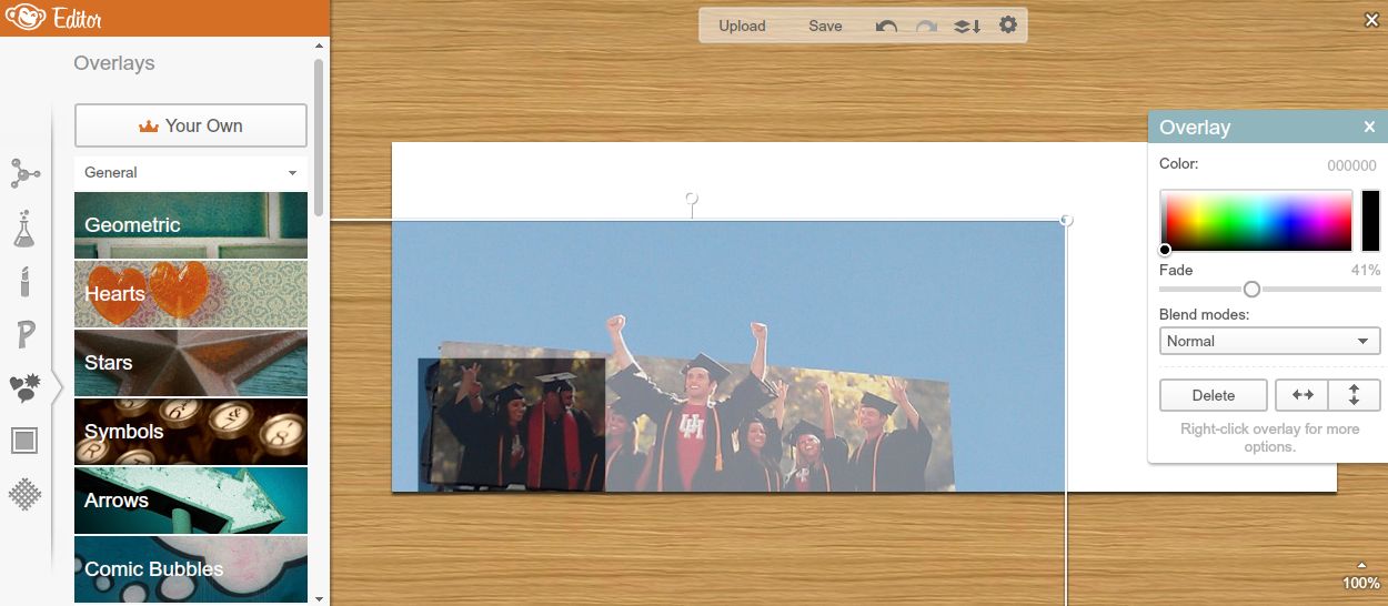 I clicked on “Overlays” and then where it says “Your Own”, I uploaded the picture of the billboard. Notice how on the right where you can adjust the picture, I faded the photo to 41% so I can see what part of the image would overlap the profile box. I then cropped my profile picture to line up with it and it came out like this: