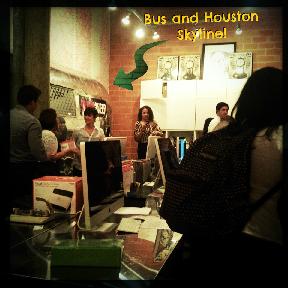 The Founder of The Black Sheep Agency, Aimee Woodall, and a few more from the flock (Kellie Bramlet, Account Executive and Jessica Bierman, Client Services) sat down with about 45 of us for a relaxed Q & A session about entrepreneurship, agency life and the hiring process. But first, and I can’t leave this out due to my obligation to local establishments, we all snacked on egg rolls and dumplings from Jenni’s Noodle House (which you must try if you haven’t already.) I also have to mention half of a metal bus (yes, life-sized) along the wall with a unique Houston skyline above it that I absolutely adored. The skyline was outlined with nails and filled in with crossing pink strings. Simple but genius.