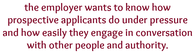 - Assess your interviewer’s needs and tailor your responses (Why are they interviewing in a group setting- to see if you can handle pressure, work with others, respond to authority?